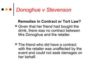 Because Donoghue was not the purchaser of the ginger beer she could not sue Stevenson for breach of contract. Also known as a snail in the bottle case it is taught to every law aspirant in their study to join a law school.